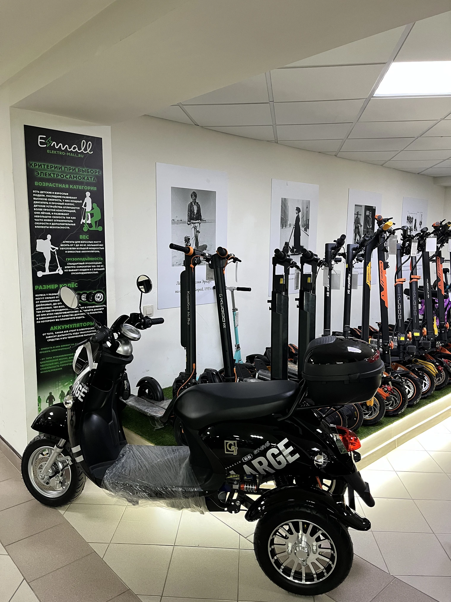 Компания Elektro-mall – это крупнейший интернет-магазин с товарами электротранспорта (электросамокатов, электровелосипедов, гироскутеров, сигвеев, моноколес, электроскутеров, электромотоциклов, электроскейтов).