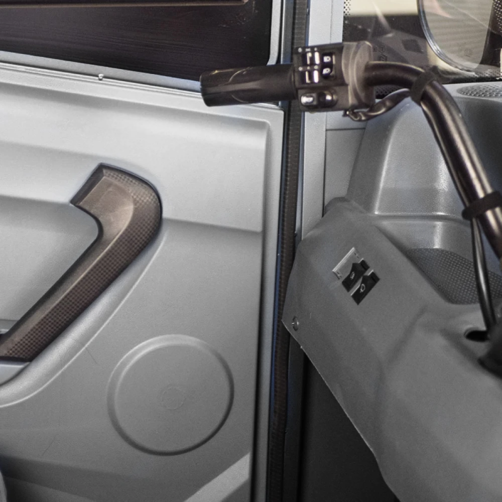 Серый Rutrike КАРГО Кабина 1500 - это надежный партнер для вашего бизнеса. Закрытый кузов защищает водителя от непогоды, позволяя работать в любых условиях. Грузовой отсек размером 1500×1050×330 мм готов принять на борт до 600 кг груза, что делает этот трицикл идеальным для городских перевозок. Мощность 1000 Ватт позволяет преодолевать до 40 км на одном заряде, а максимальная скорость составляет 25 км/ч. Управление осуществляется через мотоциклетный руль, что добавляет маневренности, а задний барабанный тормоз обеспечивает безопасность. Rutrike КАРГО - ваш верный помощник в логистике.