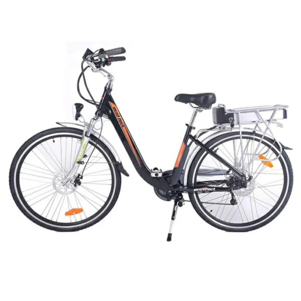 Электровелосипед Ecoffect Citybike 28, черного цвета - техника с литий-ионным аккумулятором увеличенной емкостью 10 Ач напряжением 36 В понравится пользователям своей функциональностью и модным дизайном. Стильное решение и современный LCD-дисплей выводят технику в лидеры продаж. Брендовая тормозная система представлена в виде качественных дисковых механических тормозов. Оптимальный вес 26,8 кг понравится взрослым райдерам массой до 120 кг и обеспечат отличную устойчивость на дороге.
