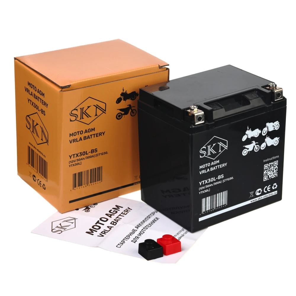 Аккумулятор стартерный для мототехники Rutrike SKN YTX30L-BS (12V/30Ah/300A) [CT 1230, YTX30L]